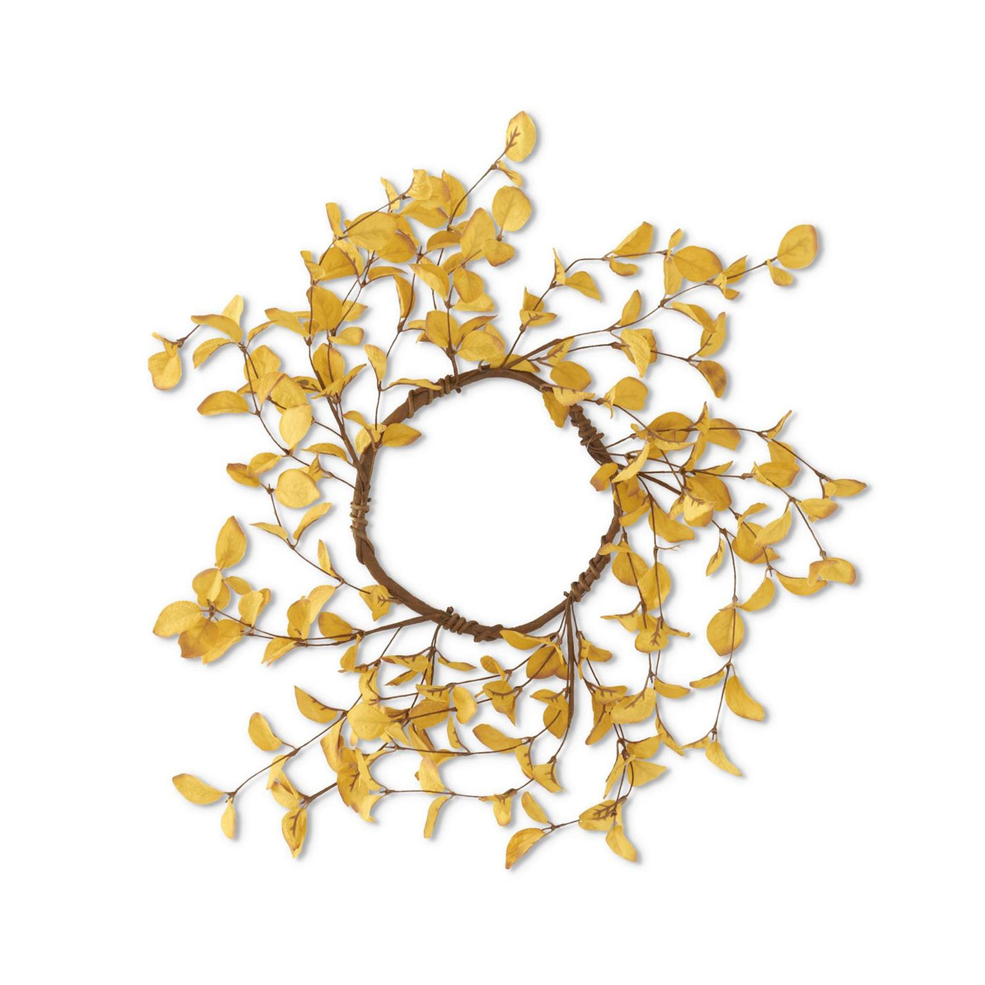 Add a pop of festive charm to your fall decor with the K&K Interiors 14 Inch Yellow Eucalyptus Candle Ring/Wreath. This vibrant accessory features a beautiful yellow eucalyptus design, perfect for adding a touch of autumn to any room. Create a warm and inviting atmosphere with this quirky and playful candle ring/wreath.