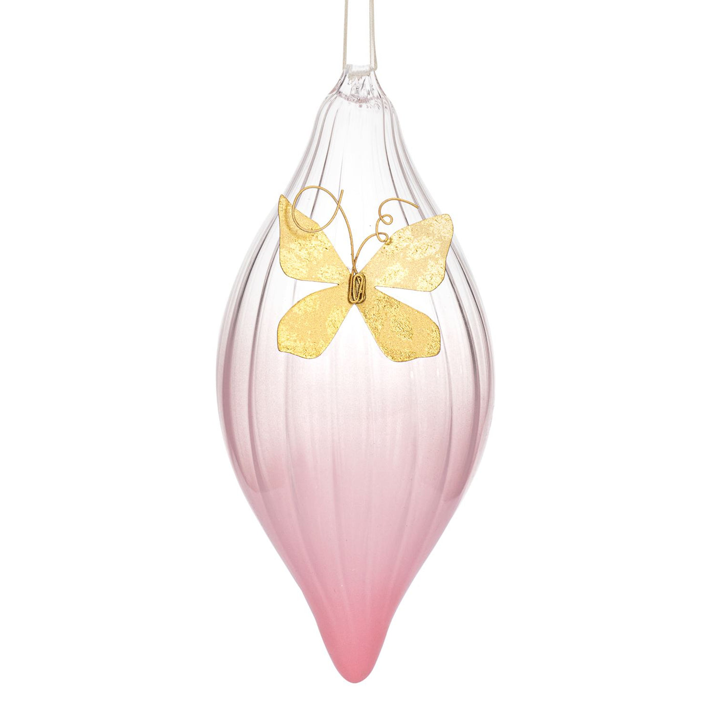 Demdaco - Dark Pink Ombre Glass Ornament with Butterfly Charm