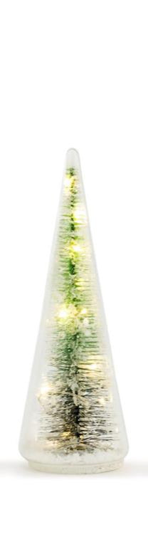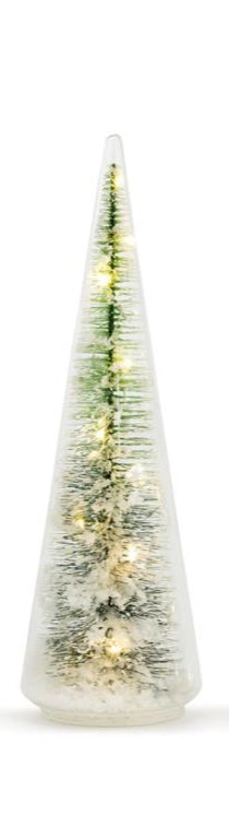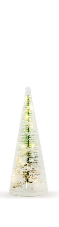 These Lit Glass Tree Figures evoke the wonders of snow-covered scenery. Wendy Wiinanen's characters are at home with the playful details of nature and a soft palette sprinkled with classic red and green.