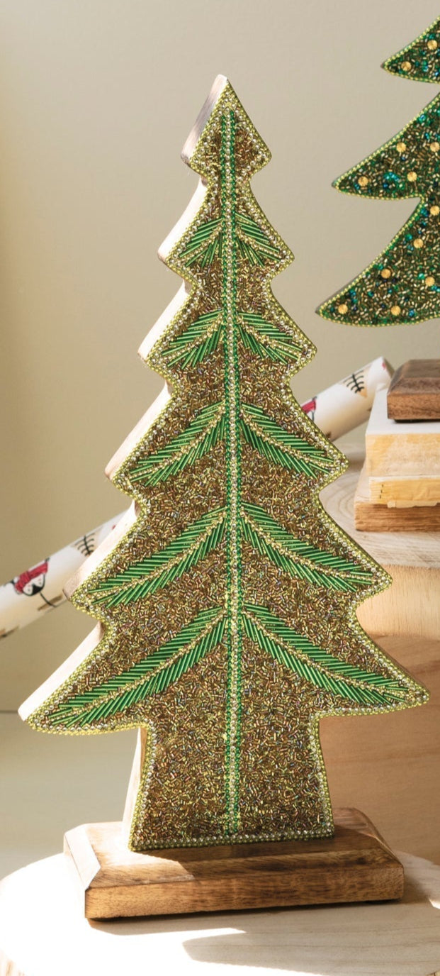 Elevate your holiday décor with the K&K Interiors Beaded Wood Christmas Trees. Crafted from natural wood and adorned with delicate bead accents, each tree offers a refined, artisanal touch. Their assorted sizes and elegant design make them perfect for creating a sophisticated festive display in any space.