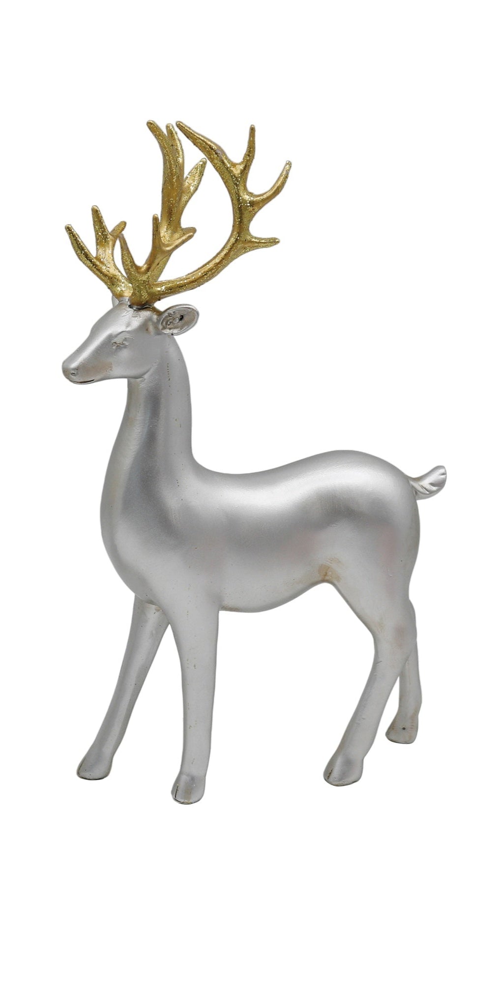 Bring holiday cheer to your space with these elegant silver resin reindeer figurines from Transpac. Their shimmering finish adds a festive sparkle, while their charming poses make them the perfect whimsical addition to your seasonal décor. Whether displayed solo or as a group, these reindeer capture the magic of the holidays with a fun, lighthearted touch.