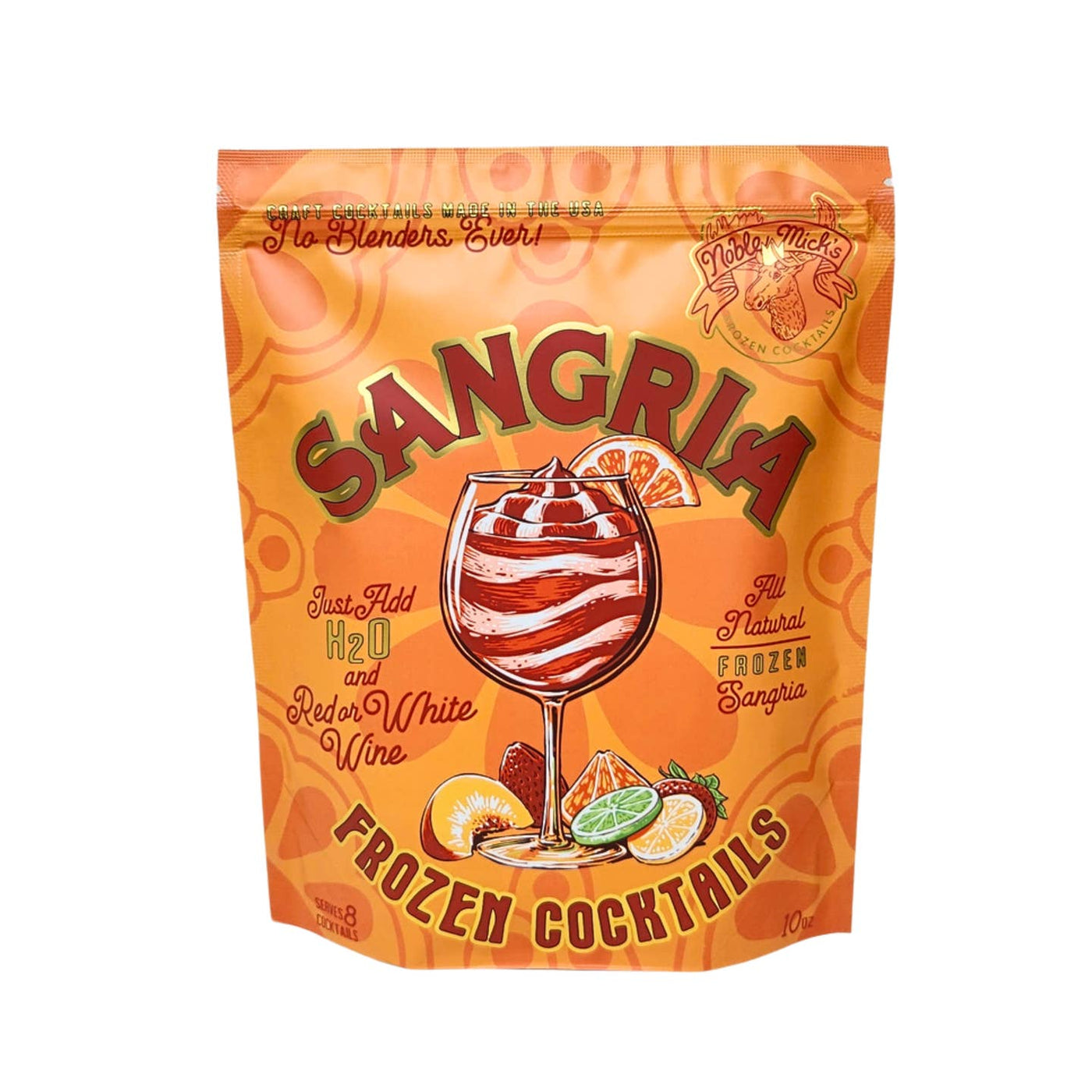 Frozen Cocktails don't get easier than this! Each bag makes 8 servings. No blenders ever! Simply add the recommended alcohol on the back of each bag and 1 bottle of water, shake or stir and throw in the freezer. 100% all natural ingredients and perfect to share with friends and family at your next party. Cheers from Noble Mick's