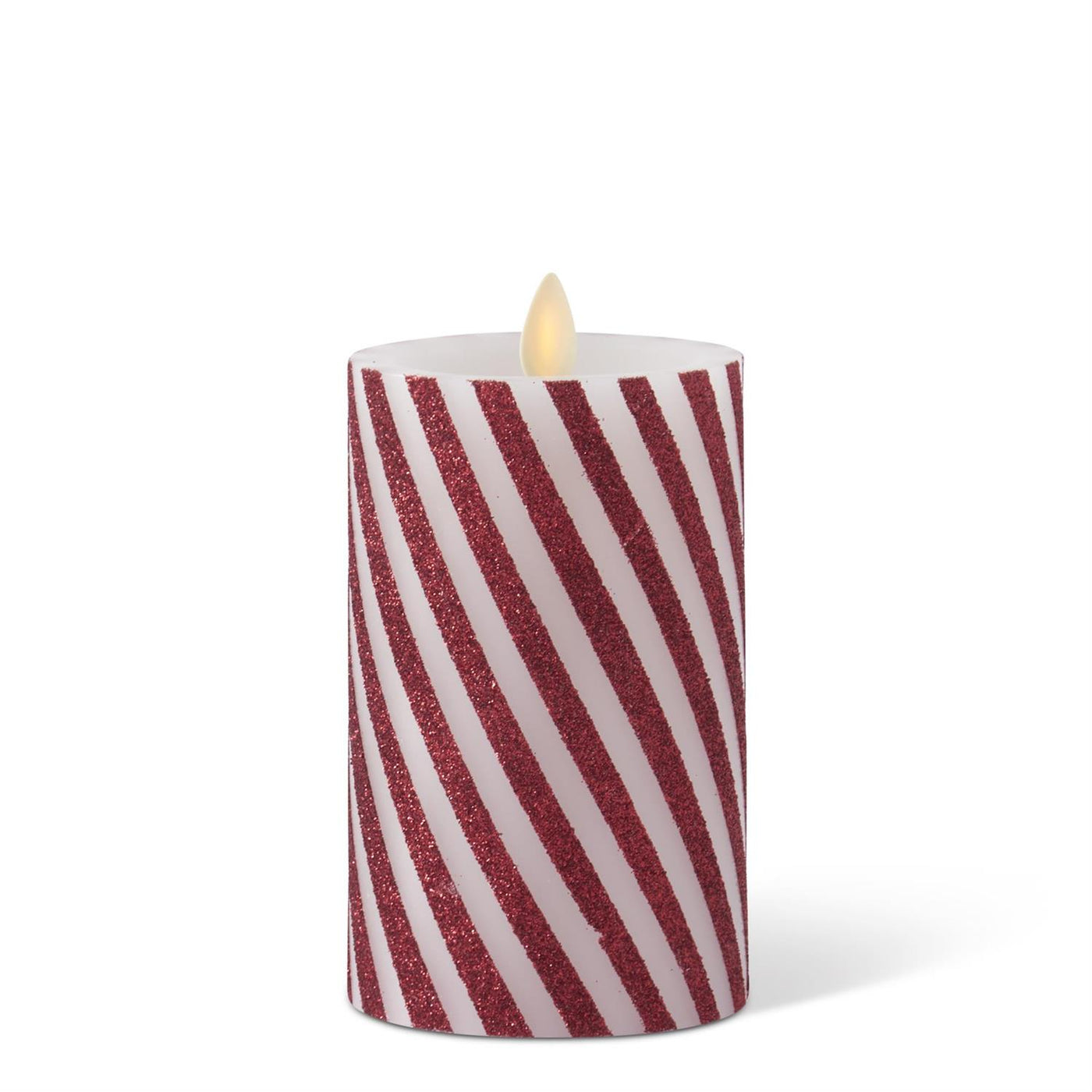 Thin Candy Striped Wax Luminara Indoor Pillar Candles - buy two or more and get a free remote!