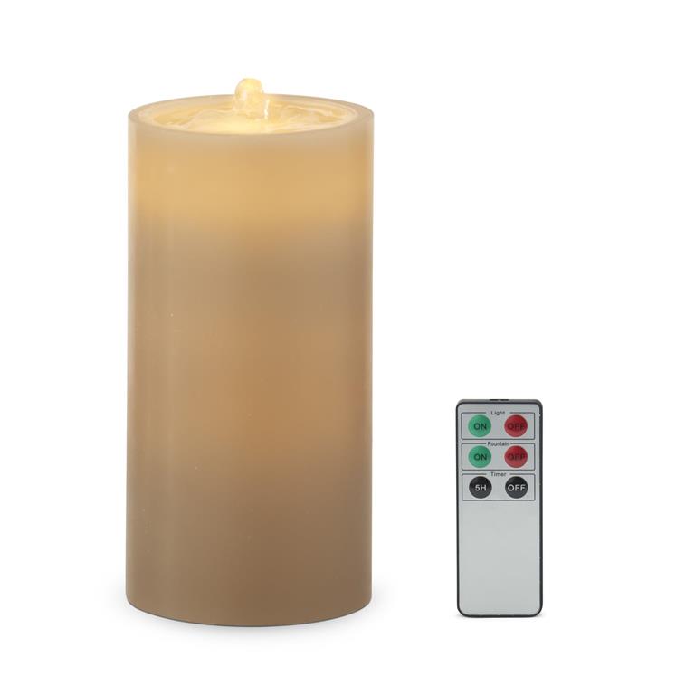Add a touch of calm and quirk to your home decor with K&K Interiors LED Wax Pillar Water Candle. With a built-in timer and remote, create a unique, relaxing ambiance without the hassle. Enjoy the benefits of a candle without the flame! (Batteries not included)