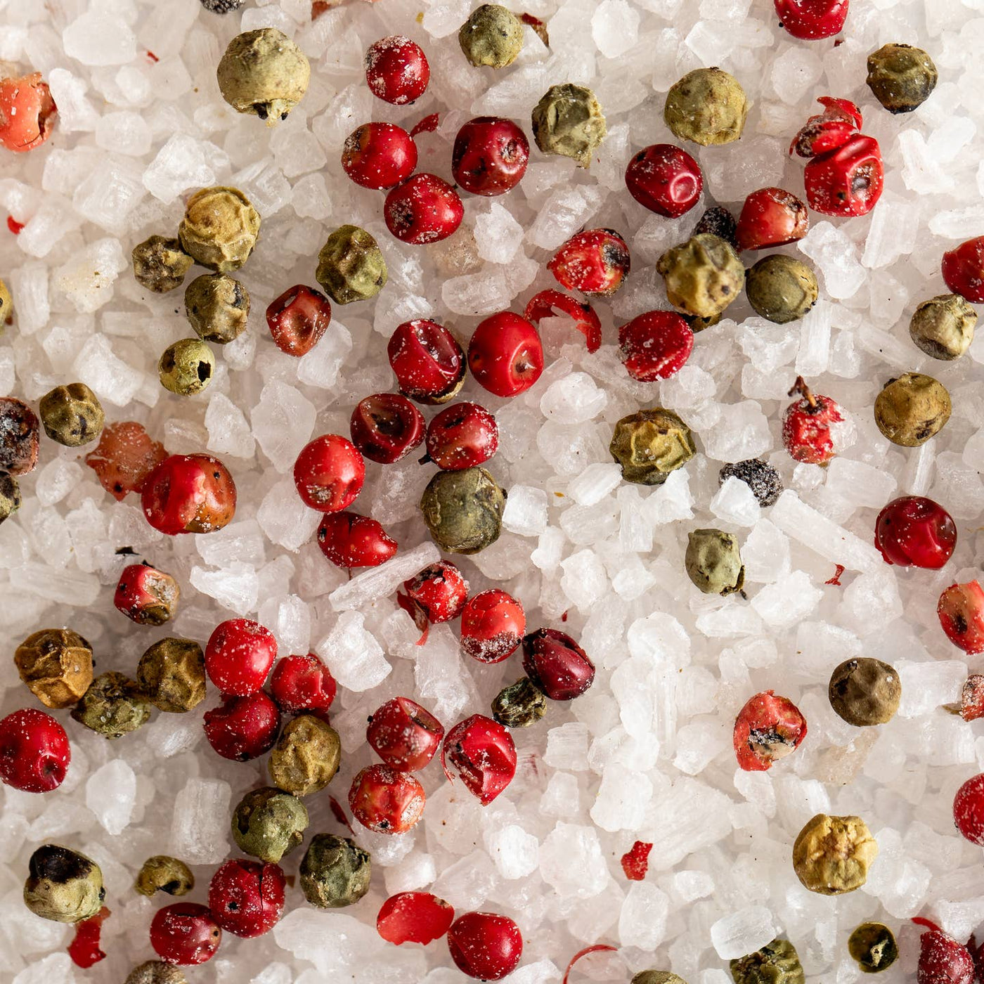 Our Pure Italian Coarse Sea Salt blended with pink and green peppercorns, this grinder is the perfect festive addition to your kitchen counter. Add to any seasonal dish for fresh spice and bright salinity.