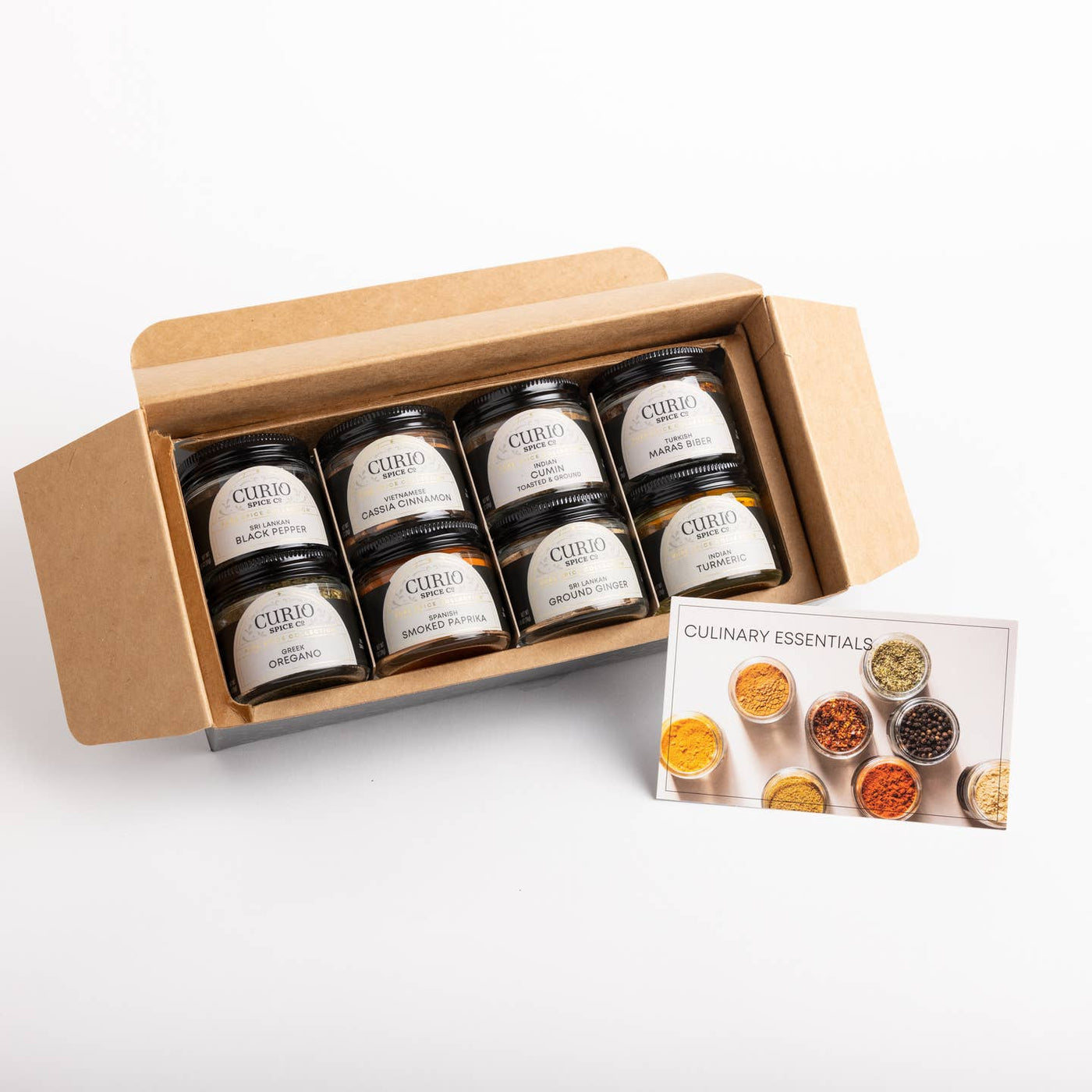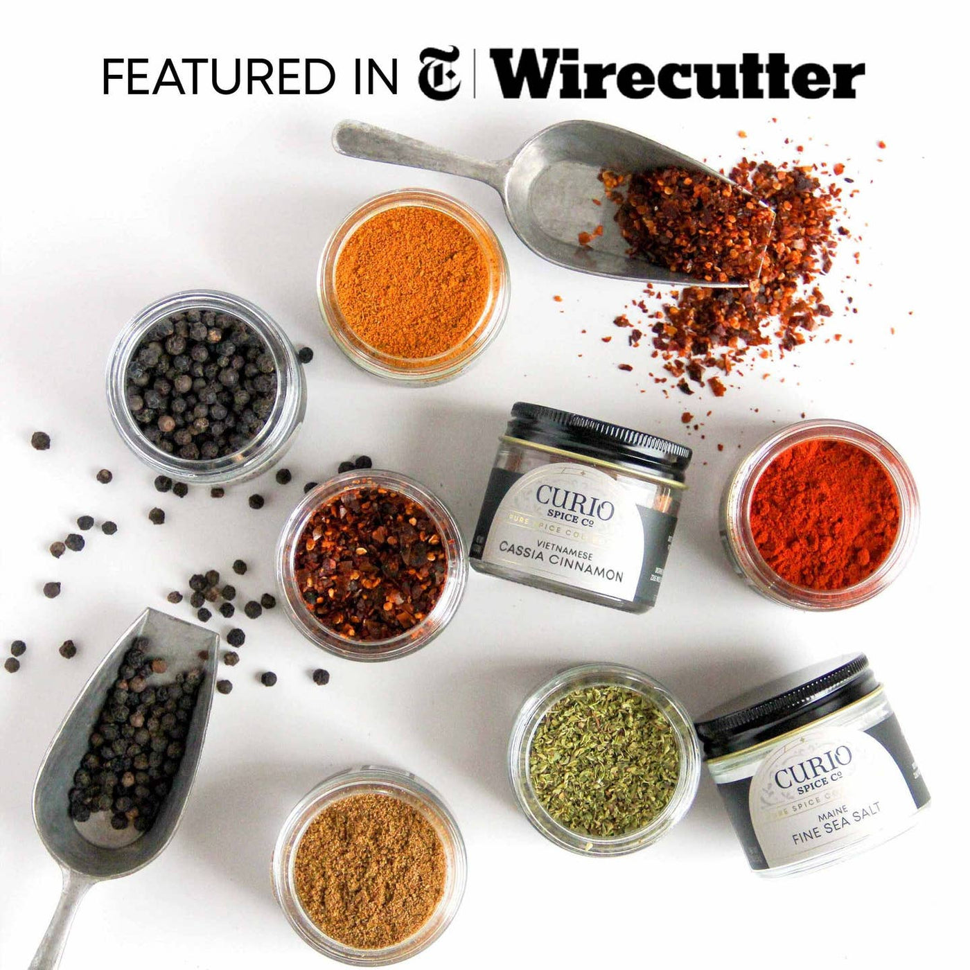 Indian Cumin, freshly toasted & ground in-house (net wt 1 oz)Sri Lankan Black Pepper, organic & Fair Trade (net wt 1 oz)Turkish Maras Chile Flakes (net wt 1 oz)Indian Turmeric, freshly ground, organic & Fair Trade ( net wt 1 oz)Vietnamese Cassia Cinnamon, organic & Rainforest Alliance (net wt 1 oz)Greek Oregano, organic, woman-owned (net wt .3 oz)Spanish Smoked Paprika, organic, woman-owned (net wt 1 oz)Ginger, Sri Lankan, ground (net wt 0.65 oz)