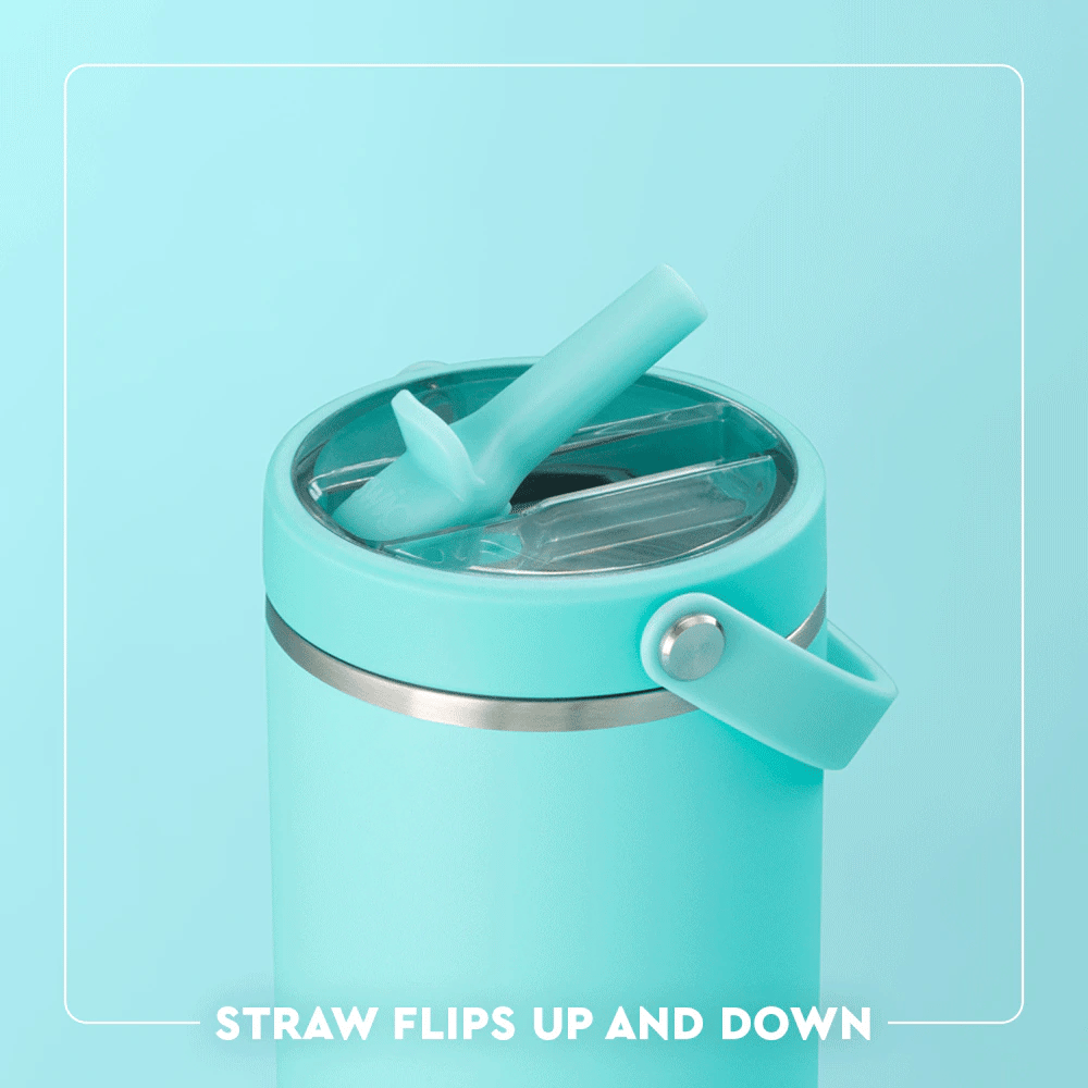 This To-Go tumbler combines our new dual threaded Flip + Sip leakproof lid, flex carry handle, and is cup holder-friendly. The straw features a curved tab that makes it easy to flip open for smooth sipping. When you're on the go, snap the straw shut for a leakproof, worry-free experience.