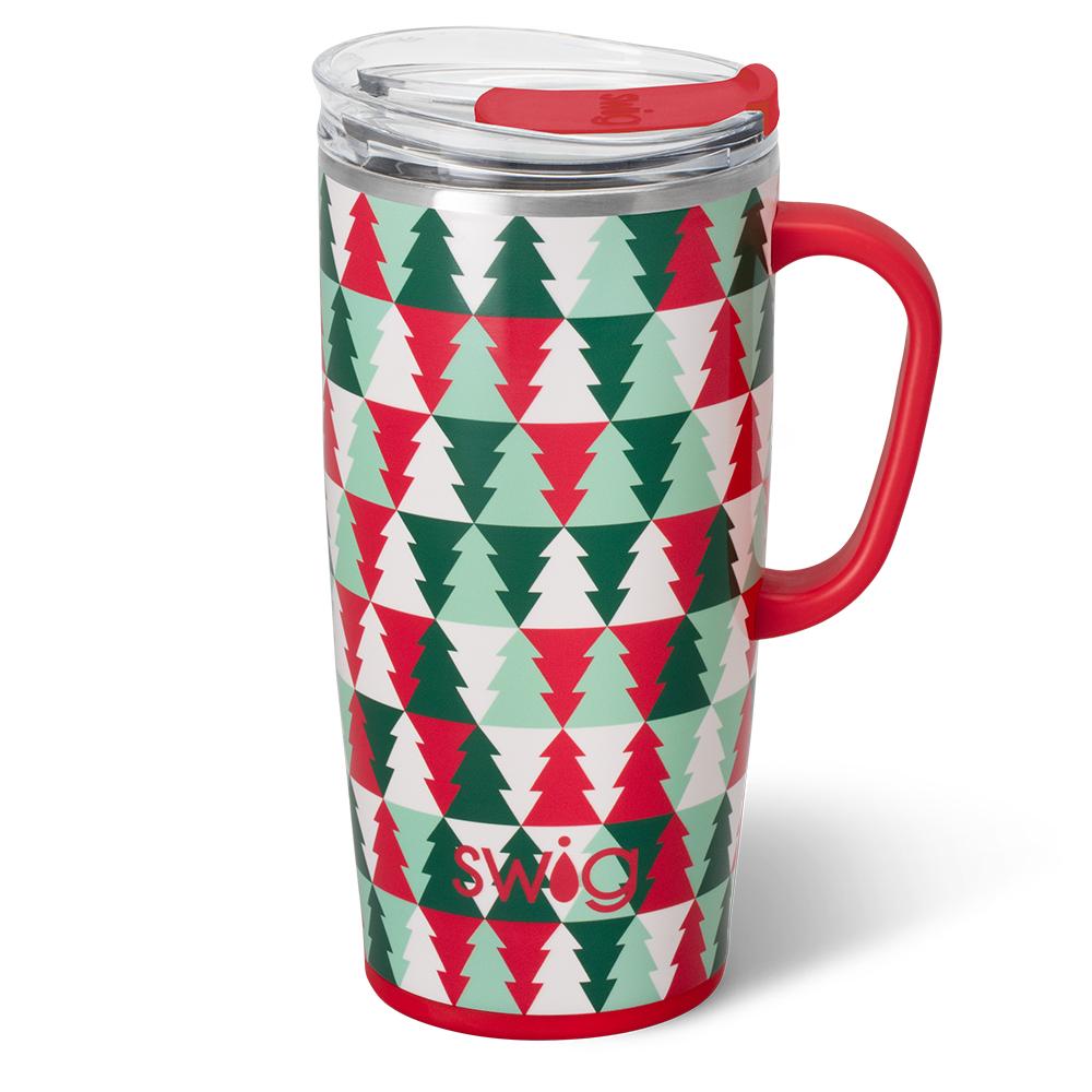We've got it handled! ☕ Red, mint, ivory, and green geometric pine trees create a sophisticated Christmas design. 🎄