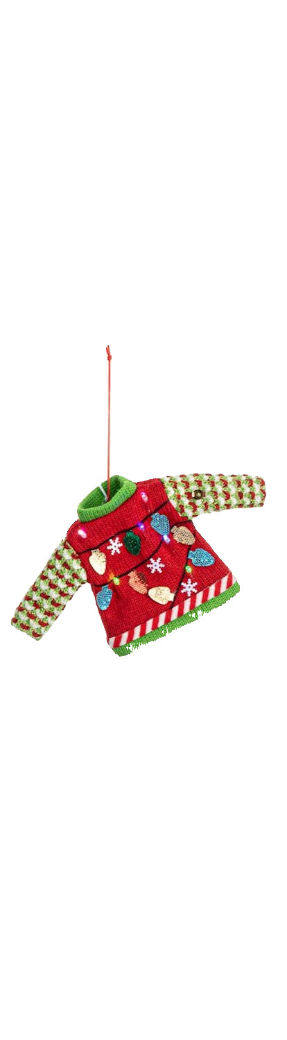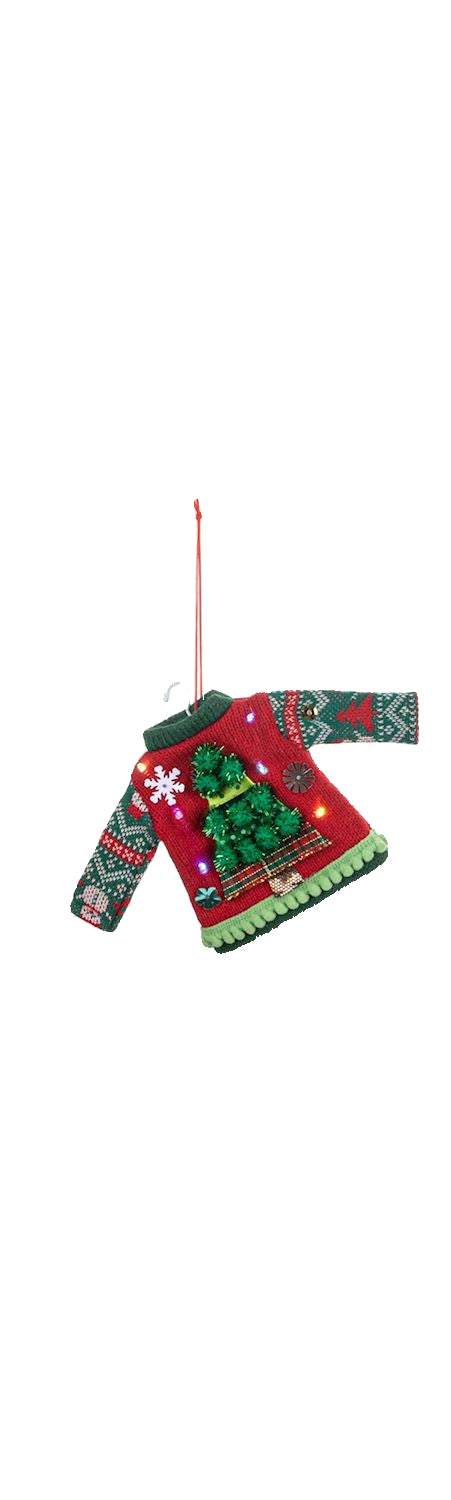 There's no better way to spread cheer this holiday season than with the Christmas Sweater Lit Ornaments - 8x5in. Surprise and delight with accessories that goes beyond the traditional ugly sweater and brings joy to those around you.