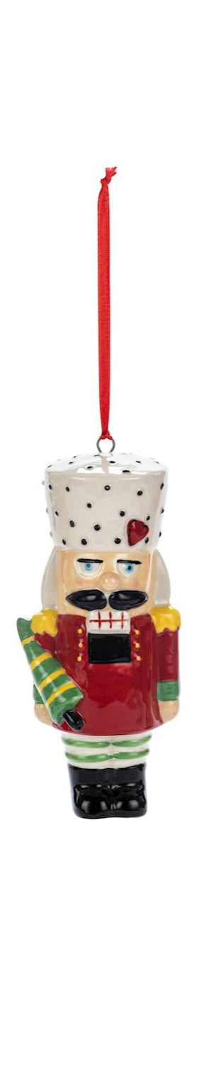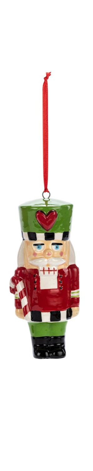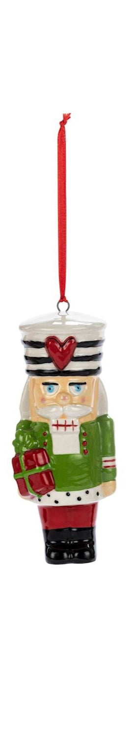 Brighten your world and color it happy! Artist Tracy Pesche's whimsical work centers around the heart. Bursting with creative expression, the Heartful Nutcracker Ceramic Ornaments 5 Assorted - 2x5in features unique textures and dimensional details that add spirit to the holiday - artistry designed to make you smile.