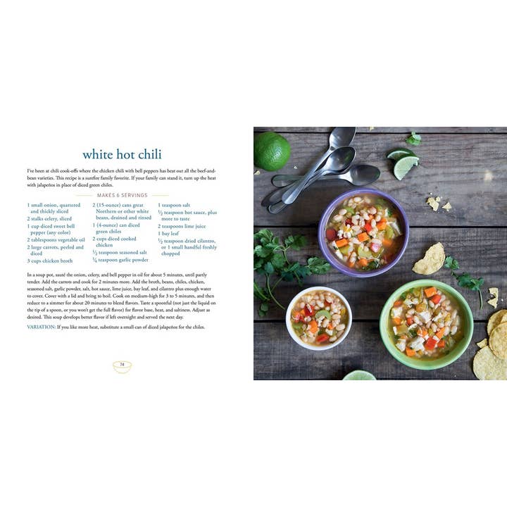 More than 50 recipes, including: Chicken and Dumplings, Asian Hot Pot, Ham Bone Soup, Carrot and Parsnip Bisque Lentil, Chickpeas, and Greens Soup
