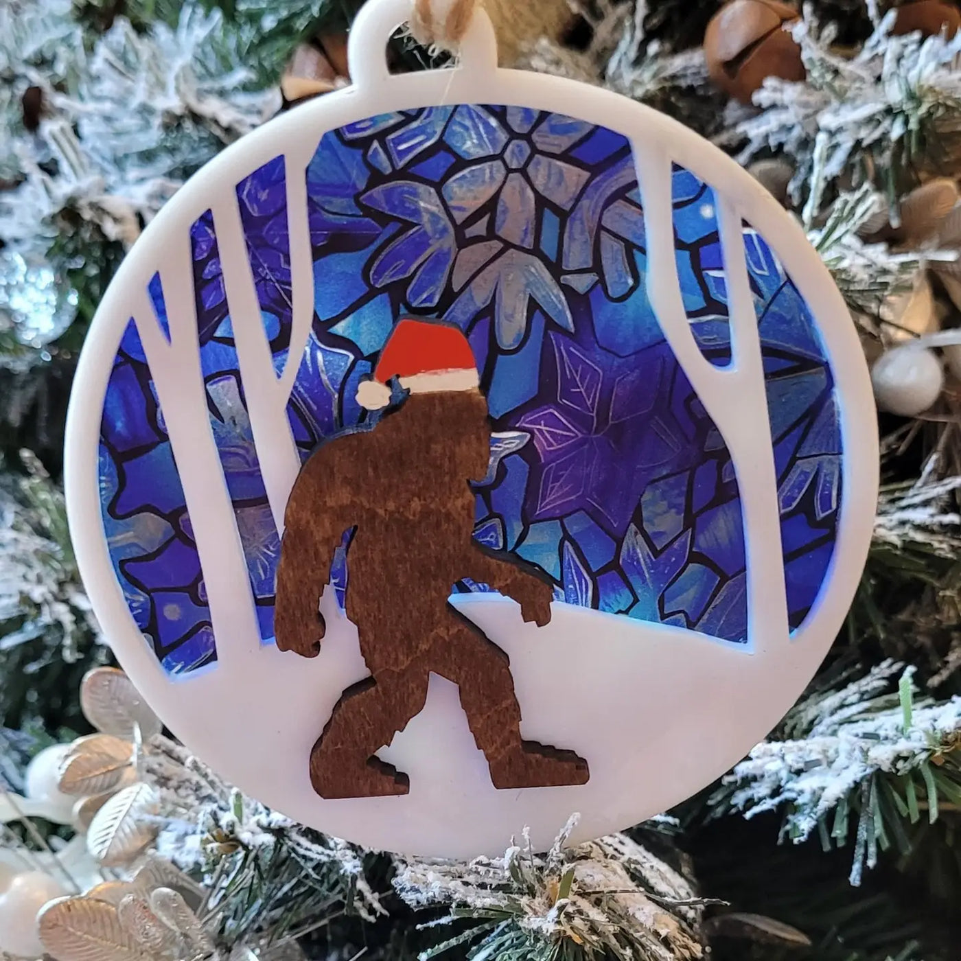 Add a touch of whimsy and mystery to your holiday decor with our Bigfoot Ornament! This unique ornament is crafted from durable acrylic and features a charming scene of Santa's bigfoot discovering the snowy woods. Handmade with care, this ornament makes the perfect addition to any Christmas tree. * Size: 3.75"w x 3.75" Handmade in Utah by woman-owned and family operated business, Jorgie Spark.