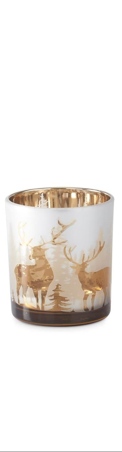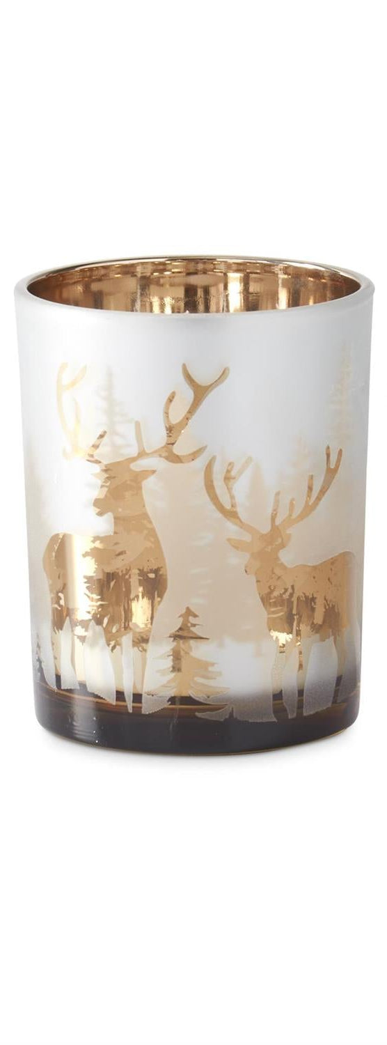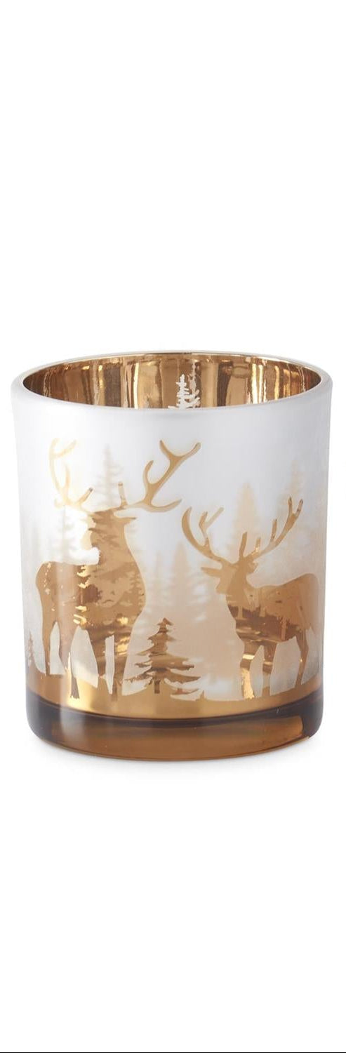 Bring winter elegance into your home with this exquisite K&K Interiors votive. Featuring a frosted glass exterior that diffuses light beautifully, the piece showcases a serene deer winter scene with a warm rose gold interior that creates an inviting glow. Available in assorted sizes, these votives work beautifully as standalone accents or grouped for layered ambiance. Perfect for seasonal décor, holiday entertaining, or year-round sophistication.