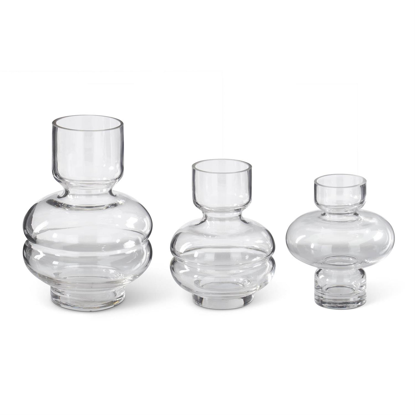 K&K Interiors - Clear Glass Pot Belly Vases (Various)