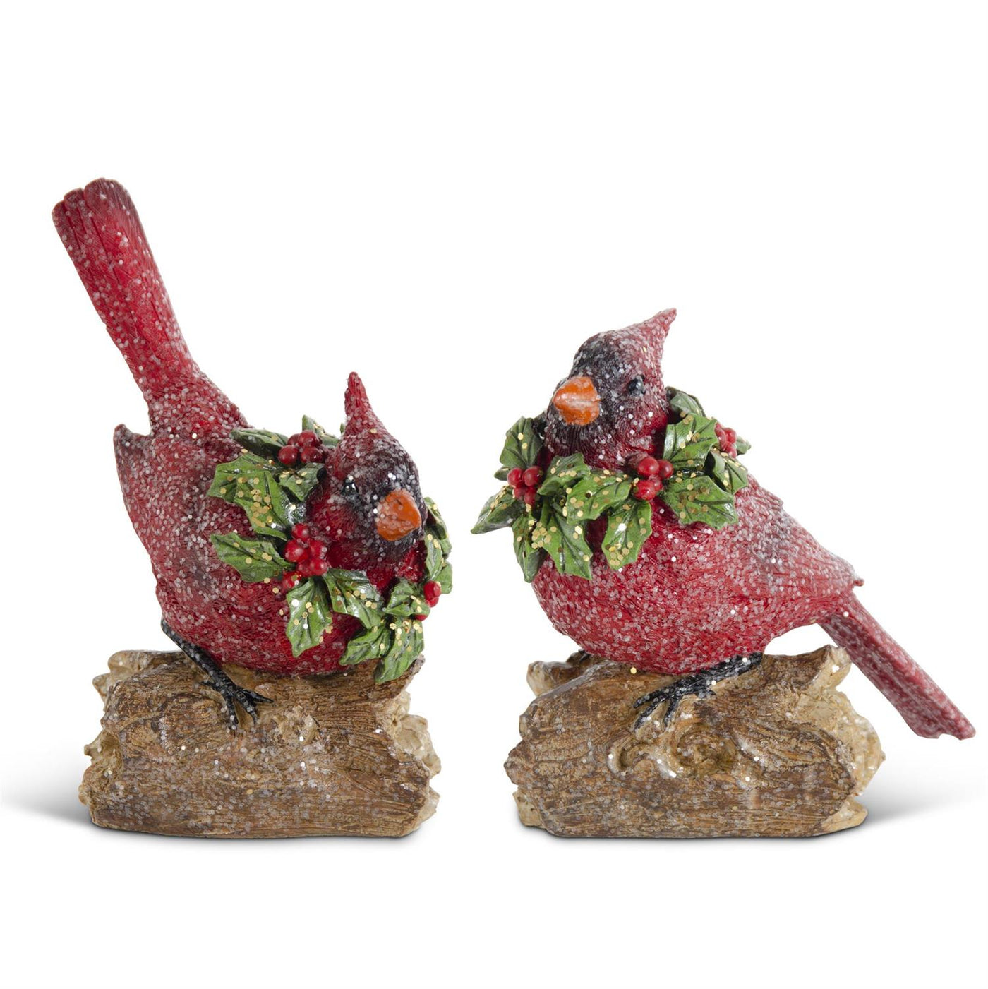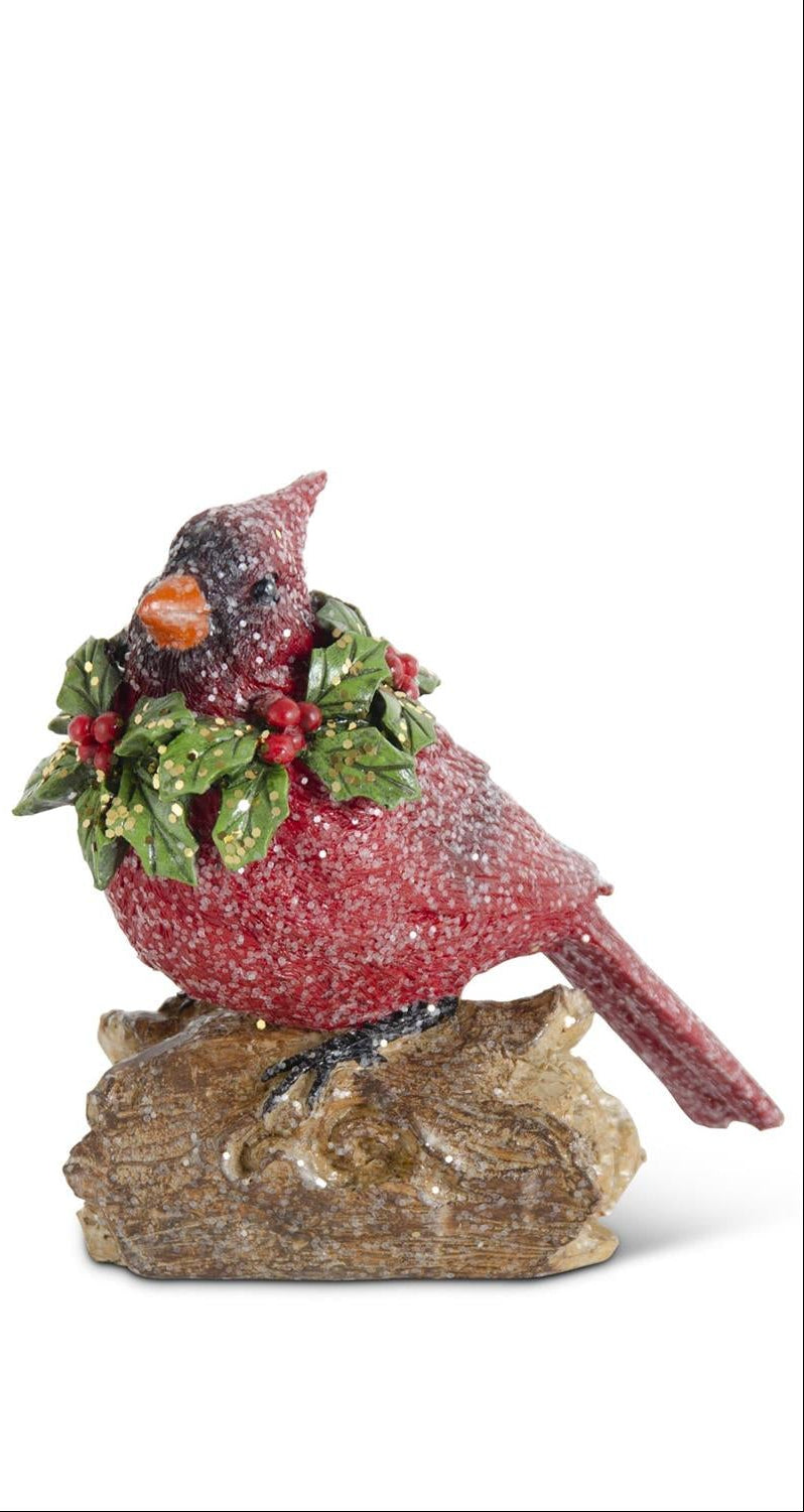 K&K Interiors - Glittered Resin Cardinals w/Holly Wreath (Assorted)