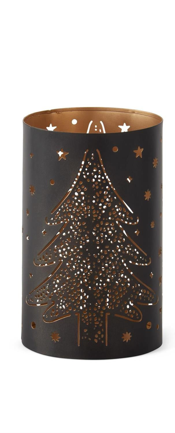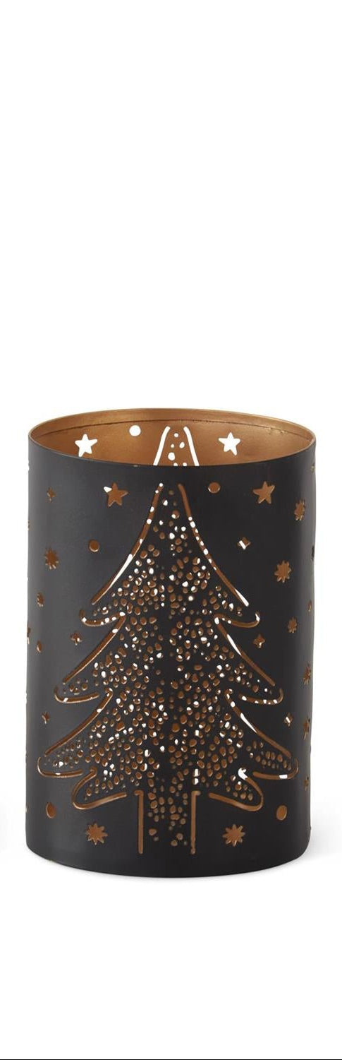These elegant votive holders bring festive charm to any holiday display. Crafted from black metal with intricate Christmas tree cutouts, the set of three pieces creates a warm, ambient glow when candlelit. Perfect for mantels, tables, or shelves, they combine timeless design with versatile styling. The cutout details cast beautiful light patterns, adding dimension to your seasonal décor. An ideal choice for creating a sophisticated holiday atmosphere or gifting to design-conscious hosts.