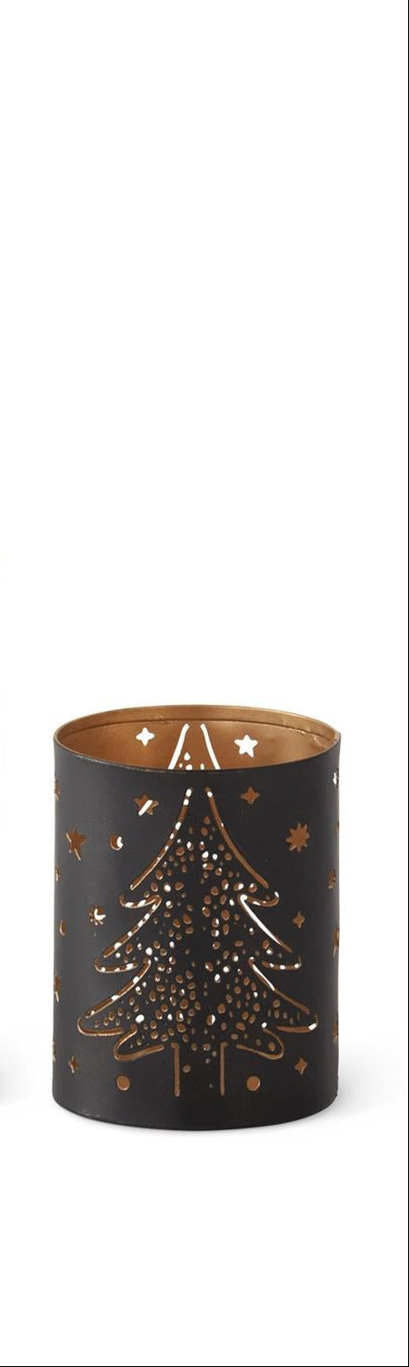 K&K Interiors - Set of 3 Black Metal Votive Holders w/Christmas Tree Cutouts